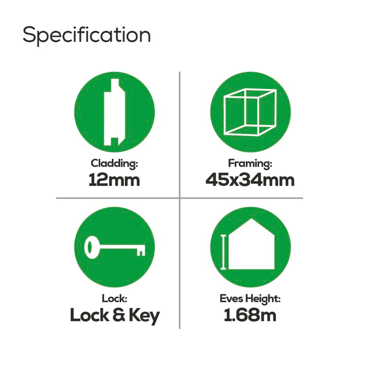 The 1.8m x 1.2m Norfolk Apex Shed is the best-selling shed in the Albany Apex roof shed range. This shed is constructed from tongue and groove shiplap even the floor and roof! Shiplap is advantageous as it allows water to run off it, this can increase its waterproof ability and will prevent draughts from penetrating between the boards. This shed is supplied with quality polyester roofing felt. The door is fully framed and braced, with three hinges. This shed has two windows side-by-side which allows in lots of natural light. The window side can be either the left or the right-hand side. The framing on this sturdy shed is 45mm x 34mm. There is a single door and it locks by lock and key. We recommend treating timber sheds within 6 months of installing. As with all timber products, regular treatment and maintenance is advised. Remember that you need a good solid base for your shed, check out our advice page for more info.