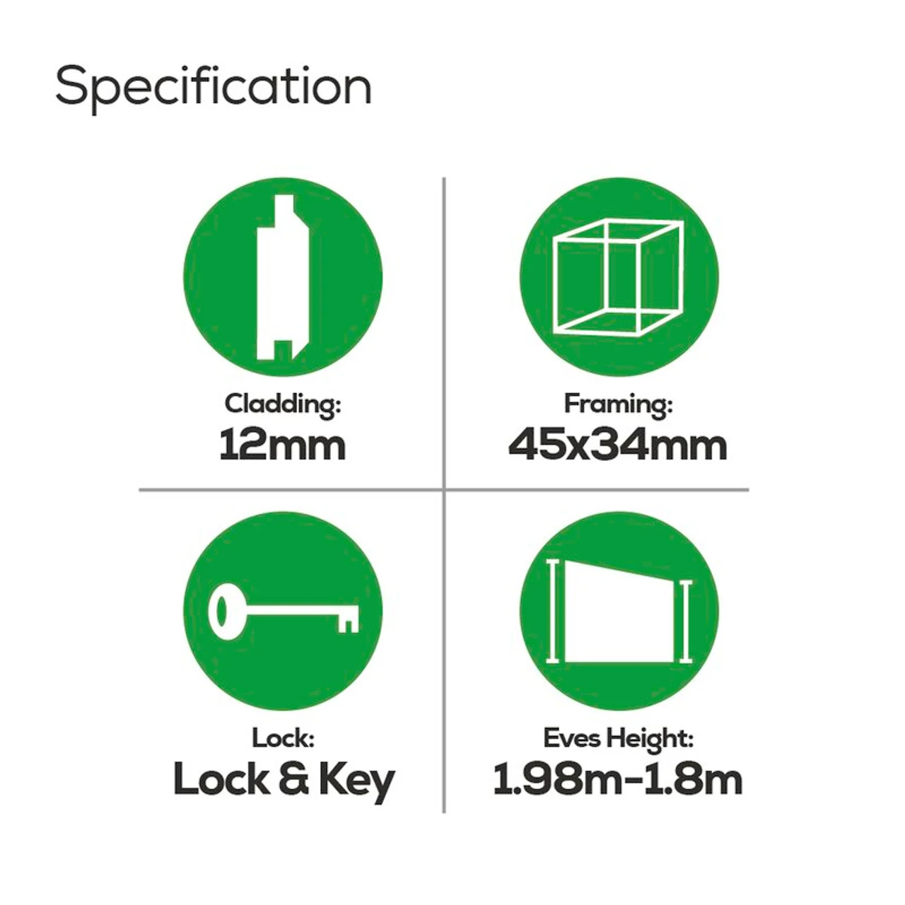 The 1.8m x 1.2m Suffolk pent roof shed is a very popular shed, built with a pent roof to allow for easy drainage off the back of the shed. The shed is constructed with tongue and groove shiplap on the walls, floor and roof. Shiplap can increase waterproof ability and prevent draughts, keeping your stored items clean and dry. The single door is fully framed and braced, with three hinges and a lock and key locking mechanism. This size shed comes with 1 window, other sizes and window options are available. The Suffolk Shed is supplied with high quality polyester-based roofing felt. Regular treatment is strongly recommended to increase the life expectancy of timber.